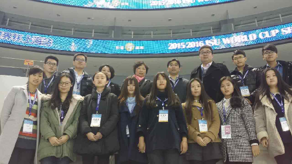 “2015/16国际滑联短道速滑世界杯上海站”于2015年12月11-13日在上海东方体育中心举行。高等职业技术(国际)学院95名志愿者承担了此项赛事的全部志愿者服务工作,并圆满完成本次赛事的志愿服务工作,为赛事的顺利进行保驾护航。