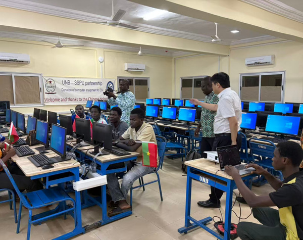 在纳兹博尼大学,由上海第二工业大学援建的首个高水平ICT实验室,已成为当地数字化转型的重要引擎。60台高配置计算机,已累计惠及4万余名学生;三年来,近60名布方师生来华接受系统培训。这不仅是硬件资源的支援,更是发展能力的共建。项目聚焦计算机与网络技术领域,创新性地将华为认证课程体系深度融入专业教学,实现了从课程设置、教学方法到评价标准的全链条闭环输出。这标志着合作从初期的“资源供给”升维至“体系共建”,真正完成了从“授人以鱼”到“授人以渔”的关键跨越,推动中国职业教育标准与方案在非洲大地落地生根。