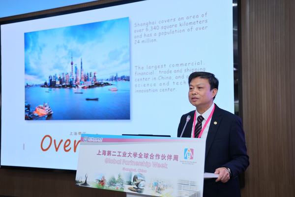 上海第二工业大学校长谢华清介绍了学校近年来的发展情况,重点回顾了过去五年学校在对外交流合作方面取得的进展与成果。他指出,学校始终坚持开放办学理念,不断拓展全球“朋友圈”,在联合科研、师生互访、人才培养等方面取得了丰硕成果。未来,学校将继续深化与全球伙伴的务实合作,推动教育对外开放迈上新台阶。