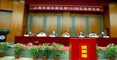 大会以鼓掌的形式通过了总监票人、监票人、计票人等工作人员名单。总监票人孙如堂向选民们讲解了投票选举的主意事项。随后,浦东新区第102选区的选民们依次走向各选举会场内的投票箱,投下了庄严的一票。