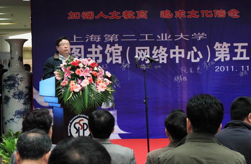 11月30日中午,由宣传部、团委、图书馆(网络中心)联合举办的第五届图书馆服务月开幕式在图文信息中心底楼大厅举行。校党委书记阮显忠,校长胡寿根,党委副书记李世平、胡晟,副校长瞿志豪、邹龙飞,校长助理王增豪以及相关部处、学院负责人,师生代表和来自企业的代表出席了开幕式。上海教育电视台副台长张伯安,曹路镇党委委员顾方强应邀参加开幕式。开幕式由瞿志豪副校长主持。