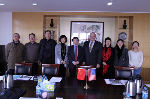 12月15日,美国桥港大学(the University of Bridgeport)校长Neil Albert Salonen一行访问我校,胡寿根校长在900会议室亲切会见了到访的美国客人。