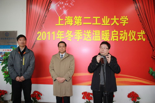 党委书记阮显忠宣布上海第二工业大学2011冬季送温暖仪式正式启动。随后,校领导们走进事务大厅,亲手为学生们送去御寒的棉被、毛毯和衣服,向同学们问寒问暖,叮嘱同学们在冬季注意保暖,有困难及时告诉师长,场面暖意融融,温馨涌动。