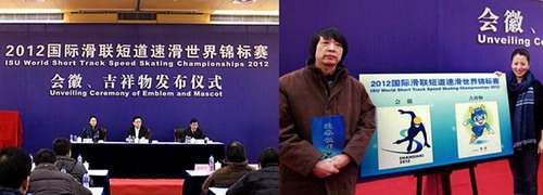 2012年1月4日,2012国际滑联短道速滑世锦赛会徽、吉祥物新闻发布会在东方体育中心举行,上海市体育局局长李毓毅和2012国际滑联短道速滑世锦赛形象大使杨扬共同揭开了会徽和吉祥物的神秘面纱。