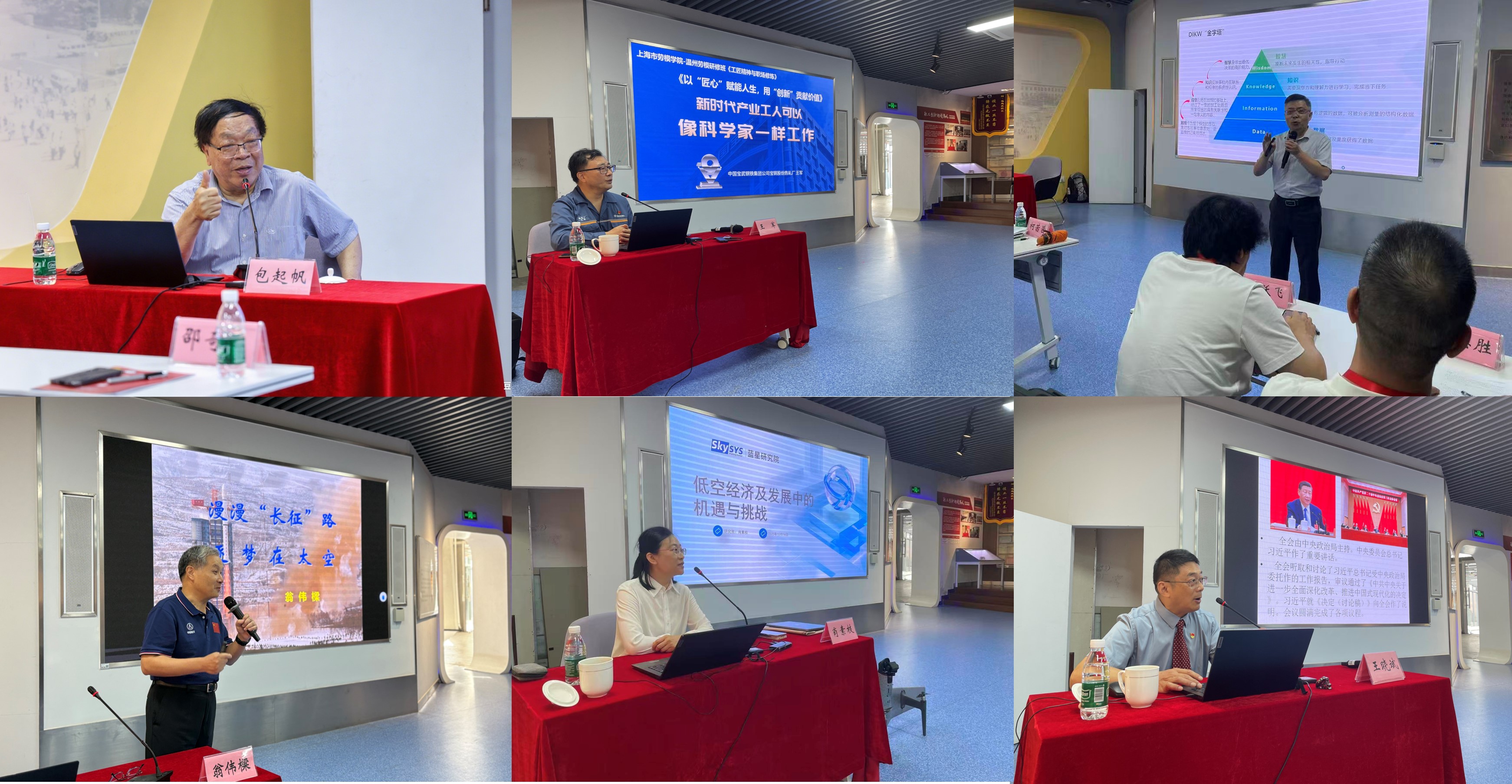本次研修班为期一周,采用专题讲座与现场教学相结合的形式,内容涵盖党的理论、“三个精神”传承、前沿科技等多个领域。邀请了全国著名劳模包起帆,全国劳模、中国宝武集团宝钢股份技能专家王军,星逻人工智能技术(上海)有限公司联合创始人肖素枝,原上海航天技术研究院科技委**翁伟樑,南京信息工程大学教授、南京钢铁股份有限公司人工智能首席专家顾廷权等专家劳模授课;组织学员赴百度飞桨人工智能赋能中心、上海航天局、上海劳动模范风采馆、上海工匠馆等开展现场教学。课程内容切合热点、理论学习与沉浸式教学相结合,受到劳模学员们的广泛好评。
