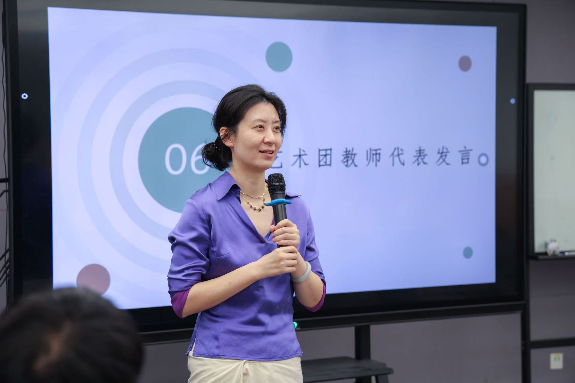 会上,艺术教育中心教师为全体艺术团成员介绍了艺术团规章制度、选课与学分管理、资产借用等事项。大会上对过去一学年获得优秀称号的学生、干部、团队等进行了表彰。艺术与设计学院党总支副书记、艺术教育教学团队张瑞瑶老师作为教师代表进行了发言,鼓励同学们在艺术团中努力提升自身艺术修养和综合素质。最后艺术与设计学院党总支书记、艺术教育中心主任刘永生老师对艺术团过去一年所取得的成绩给予了肯定,对艺术团在新一学年的发展提出殷切期望,希望师生们共同发挥自身优势,以艺术团的自身力量带动全校师生在学习之余积极培养艺术兴趣爱好,提升自身艺术修养并携手共建美育校园。大会还在全体师生的共同见证下进行了新一届艺术团干部选举。