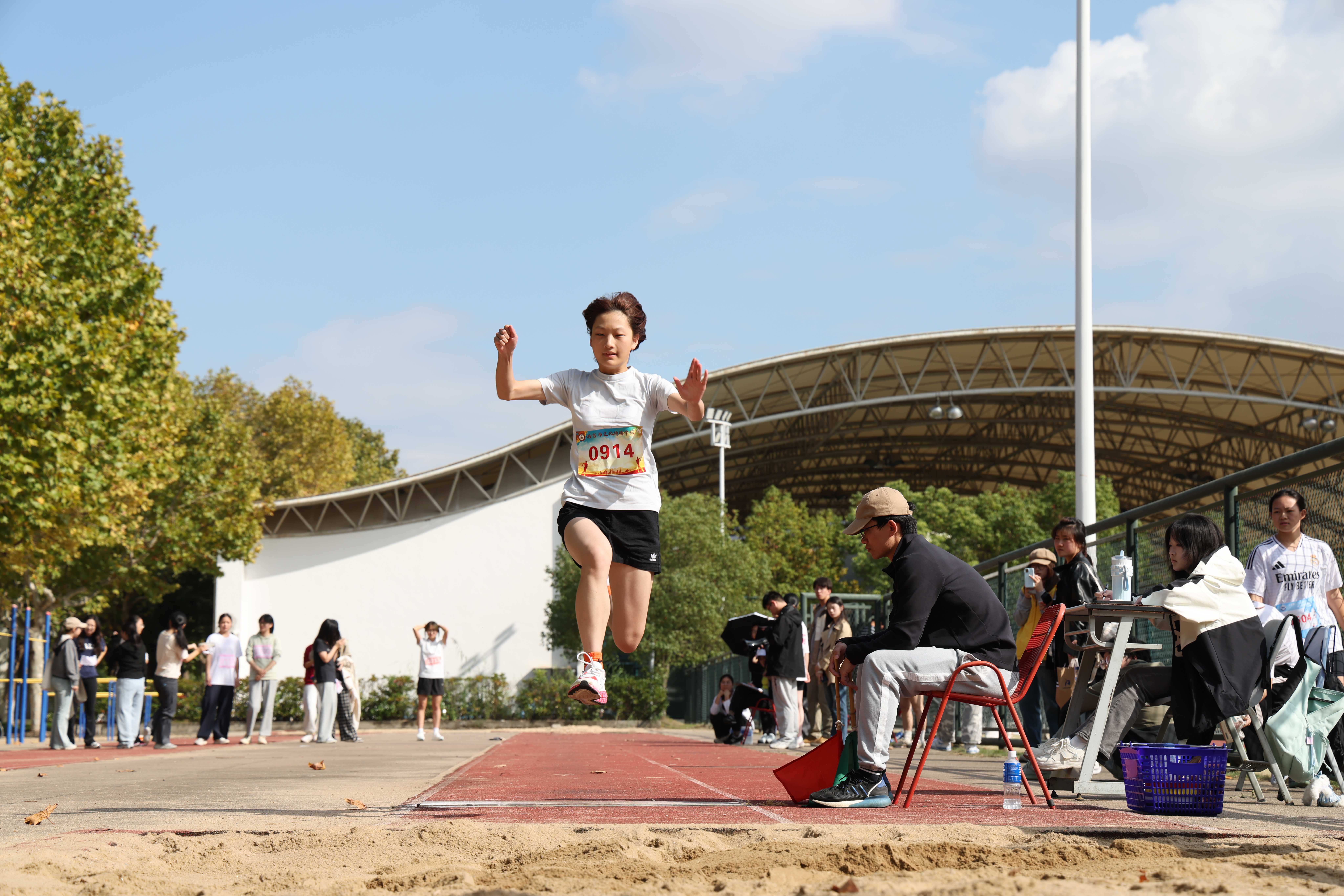作为学校传统体育盛会,本届运动会延续“师生同场、竞技与趣味兼具”的特色,设有学生组和教工组两大竞赛类别。学生组涵盖100米、200米、400米、800米、1500米等径赛项目,以及跳远、跳高、铅球等田赛项目,同时设置4×100米接力、4×400米接力、30米迎面接力、两分钟团体跳长绳等团体项目;群体广播操比赛成为各学院展现集体风采的重要窗口。教工组设置男子俯卧撑、女子仰卧起坐、跳短绳、飞镖、齐心协力击弹球、踢毽团体赛等项目,将趣味性与竞技性有机融合,让教职工在运动中放松身心、增进情谊。