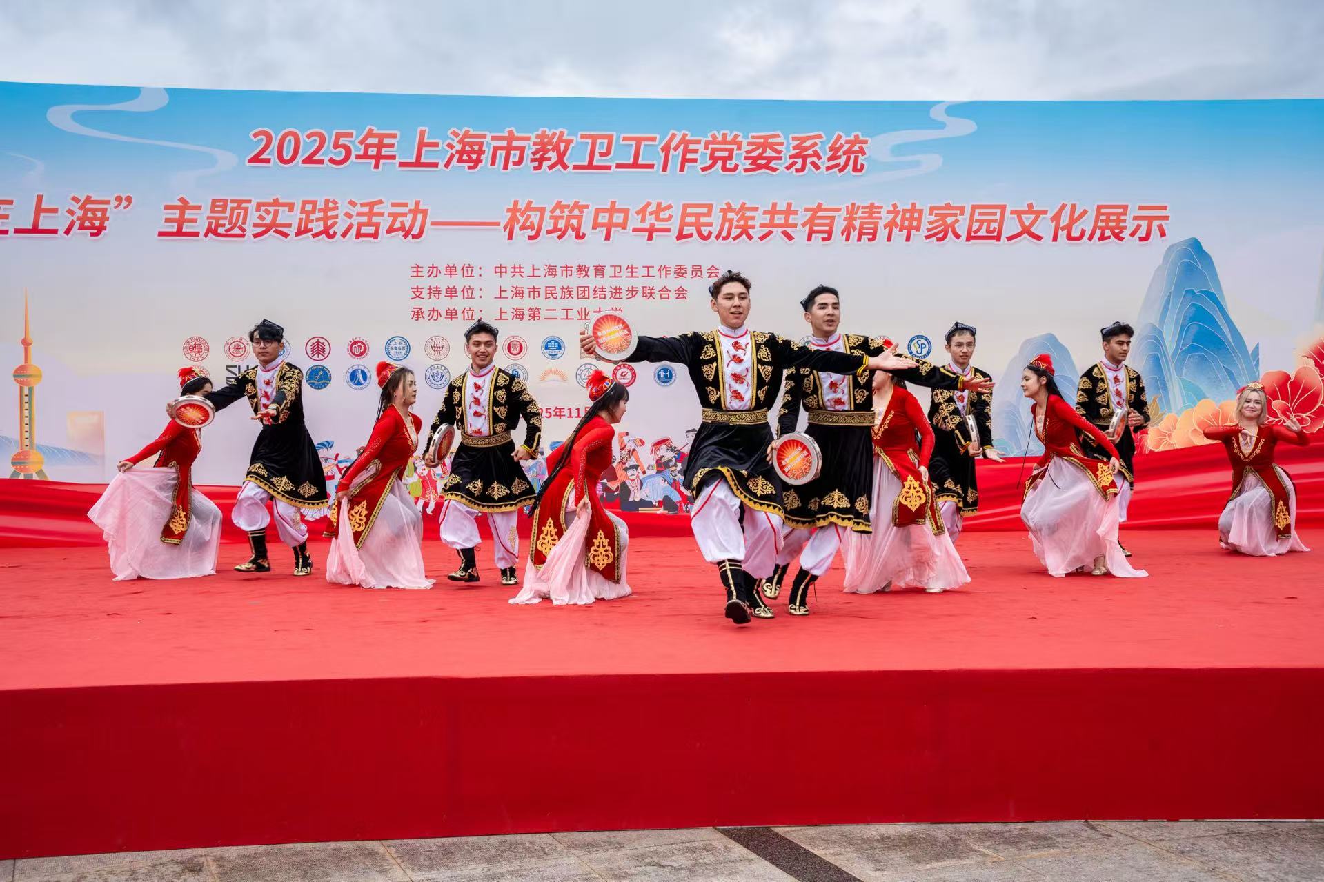 为深入学习贯彻党的二十届四中全会精神,全面落实习近平总书记关于铸牢中华民族共同体意识、做好新时代统一战线工作的重要指示精神,以文化凝心铸魂、以精神凝聚力量,11月5日,由上海市教卫工作党委主办,上海市民族团结进步联合会支持,上海第二工业大学承办的2025年上海市教卫工作党委系统“家在上海”主题实践活动——构筑中华民族共有精神家园文化展示在我校举行。