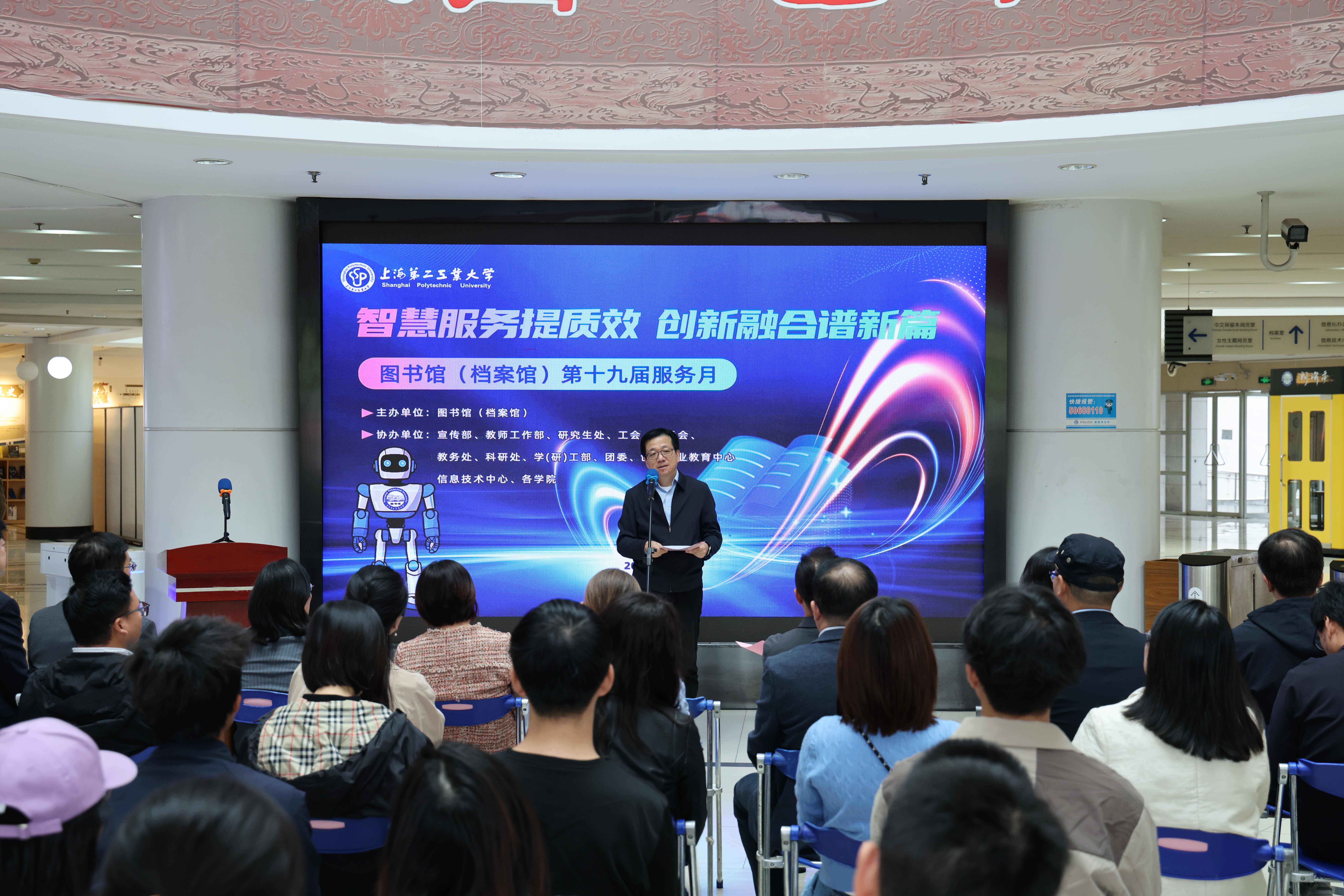 11月5日下午,以“智慧服务提质效,创新融合谱新篇”为主题的图书馆(档案馆)第十九届服务月开幕式在图书馆一楼大厅举行。校党委书记陆敏,副校长丁彬,相关职能部门、各学院负责人,图书馆(档案馆)全体馆员以及师生代表参加了开幕式。曹路镇文化服务中心党支部书记、主任邵敏应邀出席开幕式。开幕式由丁彬主持。