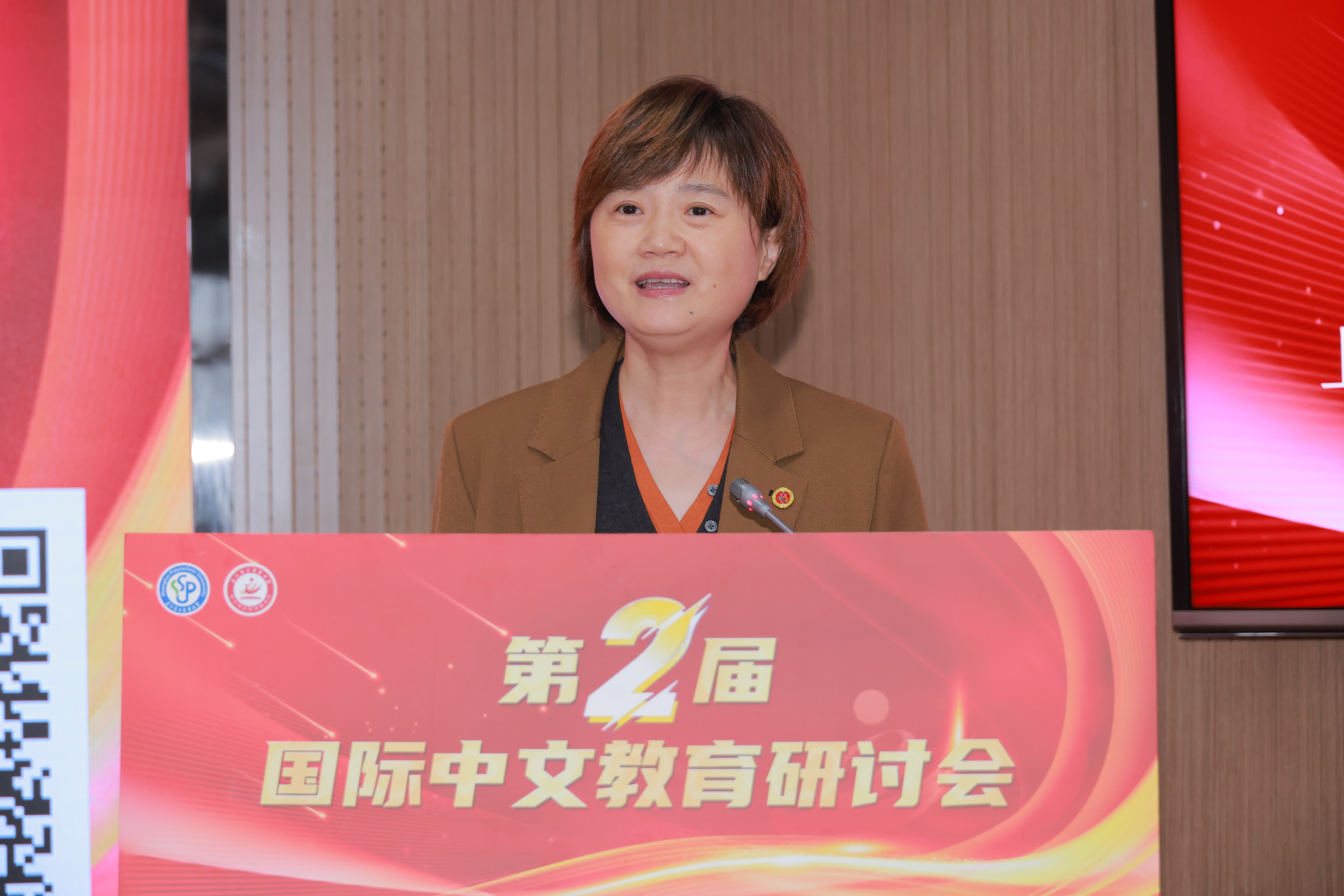 翁德玮在开幕式上致欢迎辞。她结合学校建校65周年发展成果,指出百年变局下国际中文教育“乘势而上”与“破局创新”的双重机遇,强调要将学校“产教融合”特色与中文教育深度结合,推动“中文+职业技能”“中文+专业领域”落地见效。她表示,学校将以学科建设为引领,在搭建语言桥梁、促进文明互鉴中贡献二工大力量,也期待专家学者聚焦领域痛点,贡献新理论与新方案。赵景波介绍了学校硕士学位点的跨越式增长与研究生培养模式的改革创新,肯定了学院在学科建设中的先行先试与“解放思想、融合创新”的培养理念。