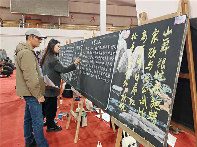 书写见真功,赛场展风采。比赛现场,老师们沉心静气,自信从容,挥毫泼墨,行云流水。他们聚精会神,精心构图,一笔一划,用心书写,展示着扎实的教学基本功和精湛的书写技艺。